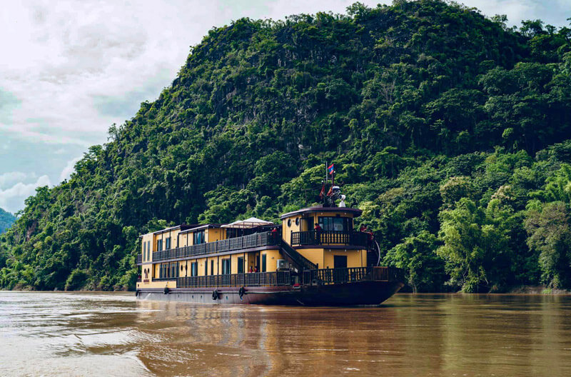 Ce Santa Maria laotien des temps modernes invite ses convives sur les méandres du légendaire Mékong pour un voyage de trois à neuf nuits de la frontière Thaïlandaise, à Luang Prabang ou Vientiane, et vice-versa. Une odyssée des sens le long de contrées ceintes de monts aux franges sylvestres constellées de hameaux lao, khmu, lue, et hmong. Une parenthèse envoûtante pour toucher du doigt les traditions et pratiques séculaires de ces communautés, tout en appréciant un service à bord à la pointe, avec un lot d’activités complaisantes mêlant cours de cuisines, séance de yoga, de Tai Chi, de méditation, initiation à la langue laotienne, barbecue sur une bande de sable enchanteresse, cérémonie de bénédiction de Baci, spectacles de musique et de danse vernaculaire, rencontre d’éléphants dans leur milieu naturel, ou encore conférences interactives sur les facettes ésotériques de l’ancien pays du Million d’Eléphant.