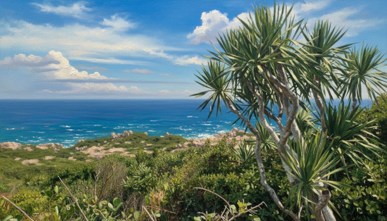 A l’ouest, s’ouvre une plage de sable blanc de 800 m, hospitalière et havre des familles de pêcheurs. Mais sur sa face orientale, tournée vers le large, l’océan se montre plus âpre : rivage de roches blanchâtres, hérissé de figuiers de barbarie (Opuntia ficus-indica), de pandanus (Pandanus amaryllifolius) et d’amandiers tropicaux (Terminalia catappa). Ici, vagues, marées et tempêtes sculptent inlassablement la pierre, taillant grottes, surplombs et chaos granitiques.